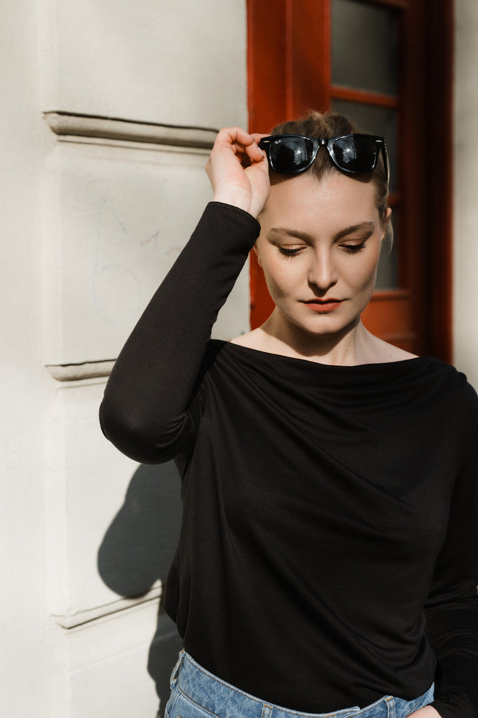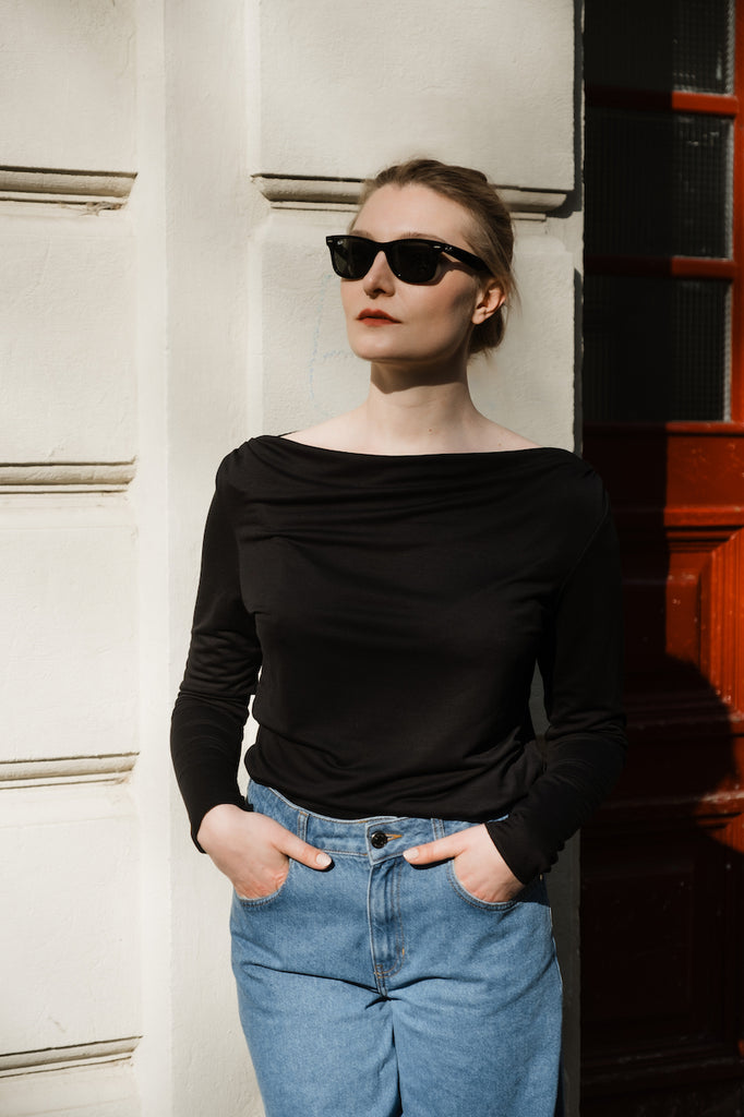 Longsleeve aus weich fallendem Tencel mit Wasserfall-Ausschnitt. Durch das hochwertige Material und den besonderen Ausschnitt hast Du ein vielseitiges Shirt, dass sich immer wieder neu kombinieren lässt und dein Outfit aufwertet.