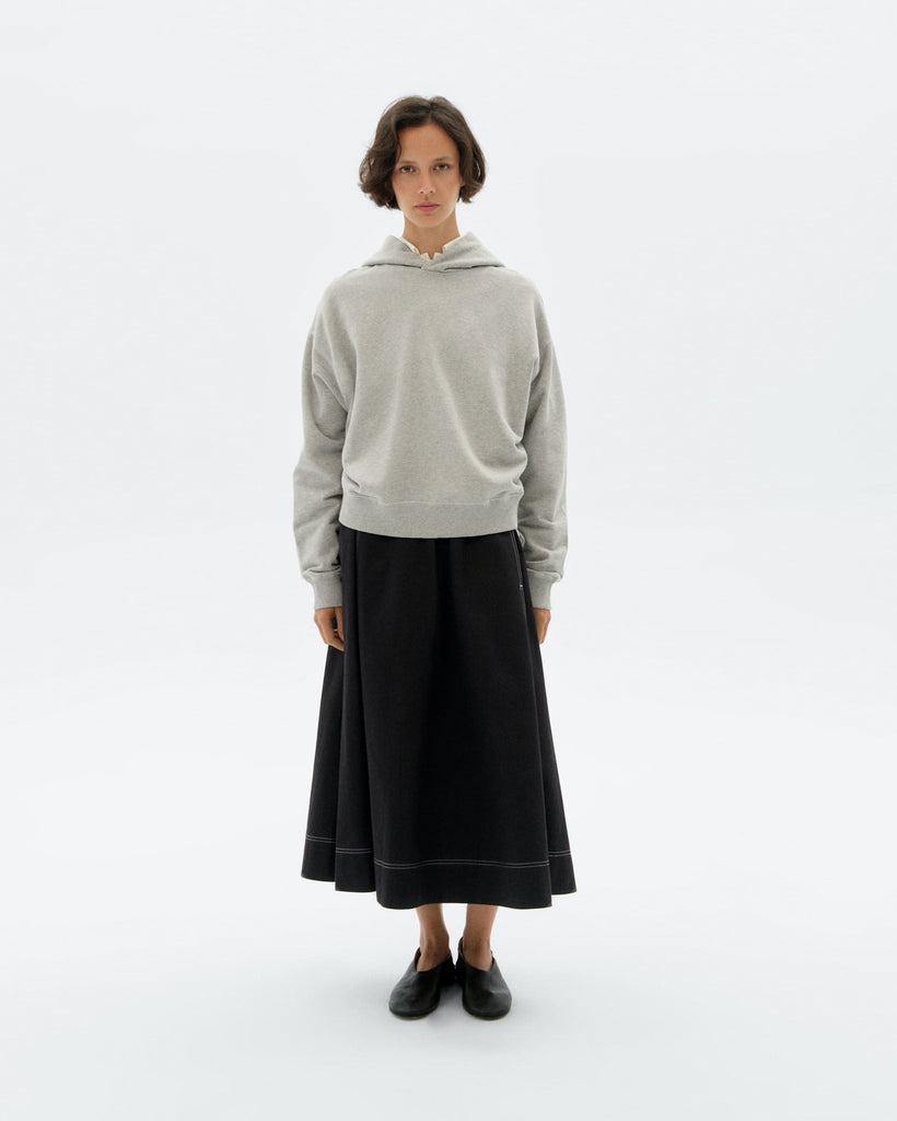 Organic hooded Sweatshirt von THINKING MU mit Rippbündchen an den Ärmeln. Relaxed Fit.