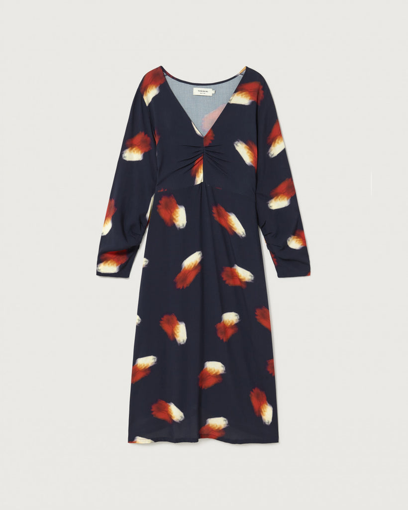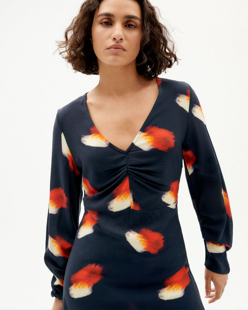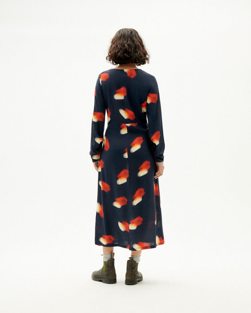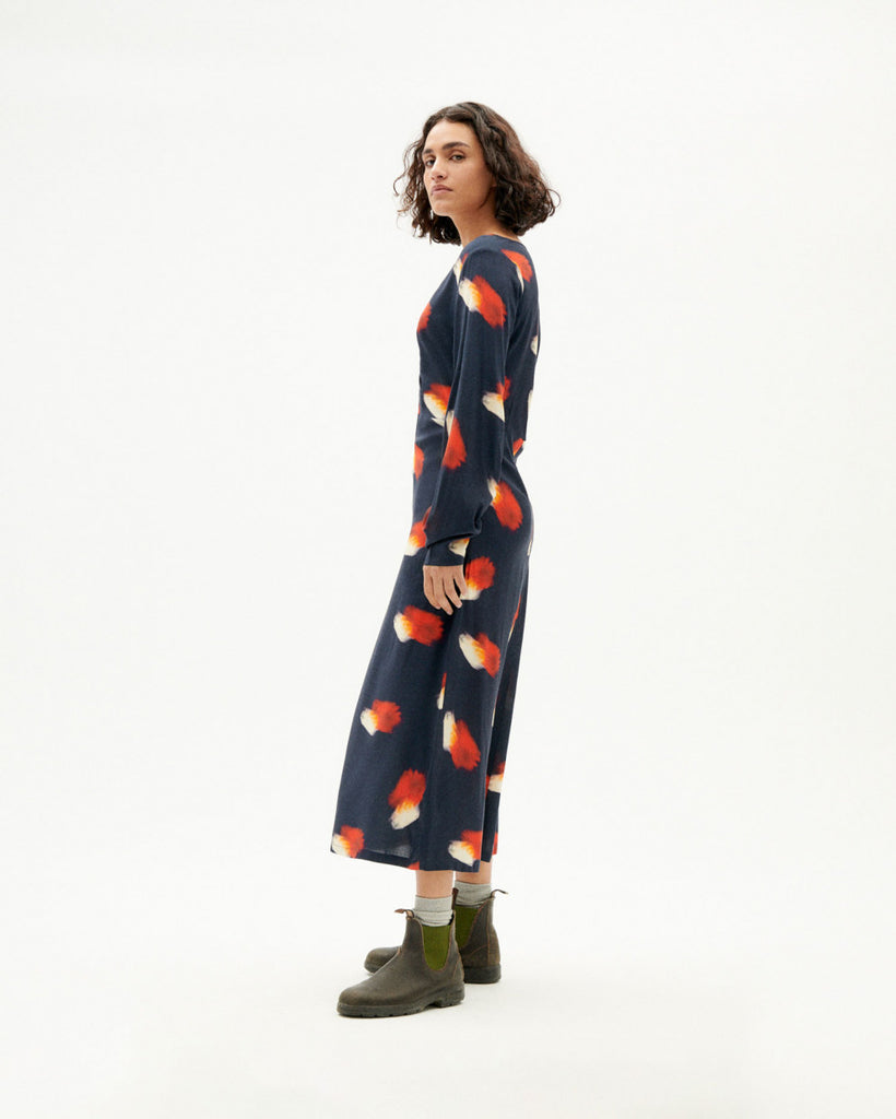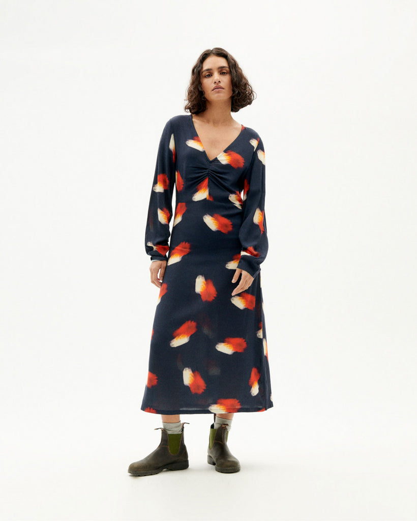Midi-Kleid mit langem Arm und V-Neck von THINKING MU. Fitted.